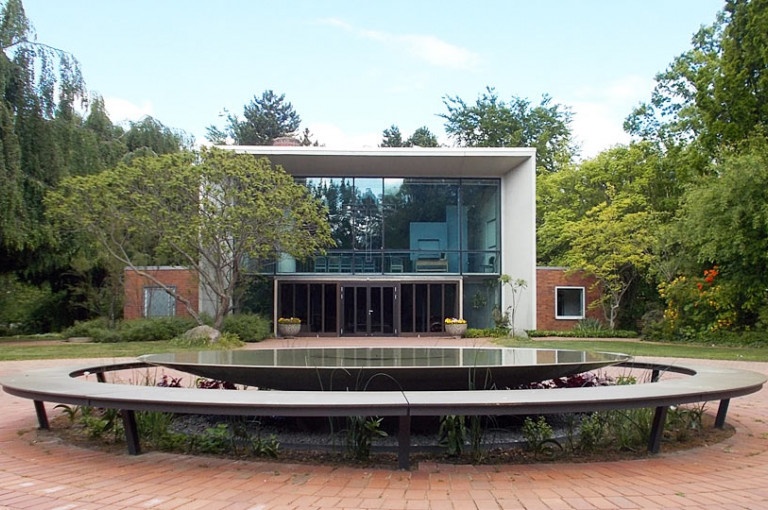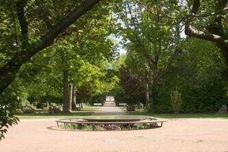 Der bestehende Brunnen wurde abgerissen und durch einen neuen Brunnen ersetzt. Dieser setzt sich aus einer aus Stahl lackierten Brunnenschale und einem umlaufenden Sitzring zusammen, dessen Unterkonstruktion aus Stahl und einer Sitzauflage aus HPL gefertigt wurde. Zwischen Ring und Schale „vermittelt“ eine Stauden- und Gräserpflanzung.