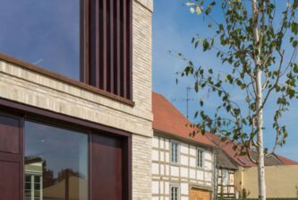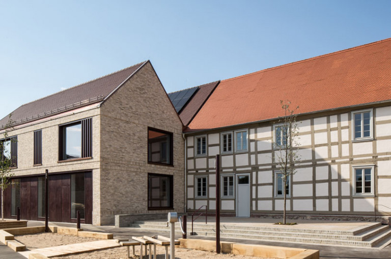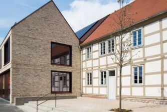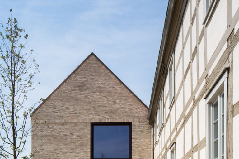 Ziel des Entwurfs ist es die Bausubstanz und Struktur des vorhandenen denkmalgeschützten Fachwerkhaus soweit wie möglich zu erhalten und um einen Neubau zur ergänzen, der sich symbiotisch an den Altbau anschmiegt. Der Neubau überträgt dabei die Gliederung des Bestands und das Bauen mit Holz mit zeitgenösssischen Mitteln in die Gegenwart.