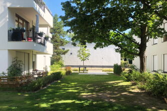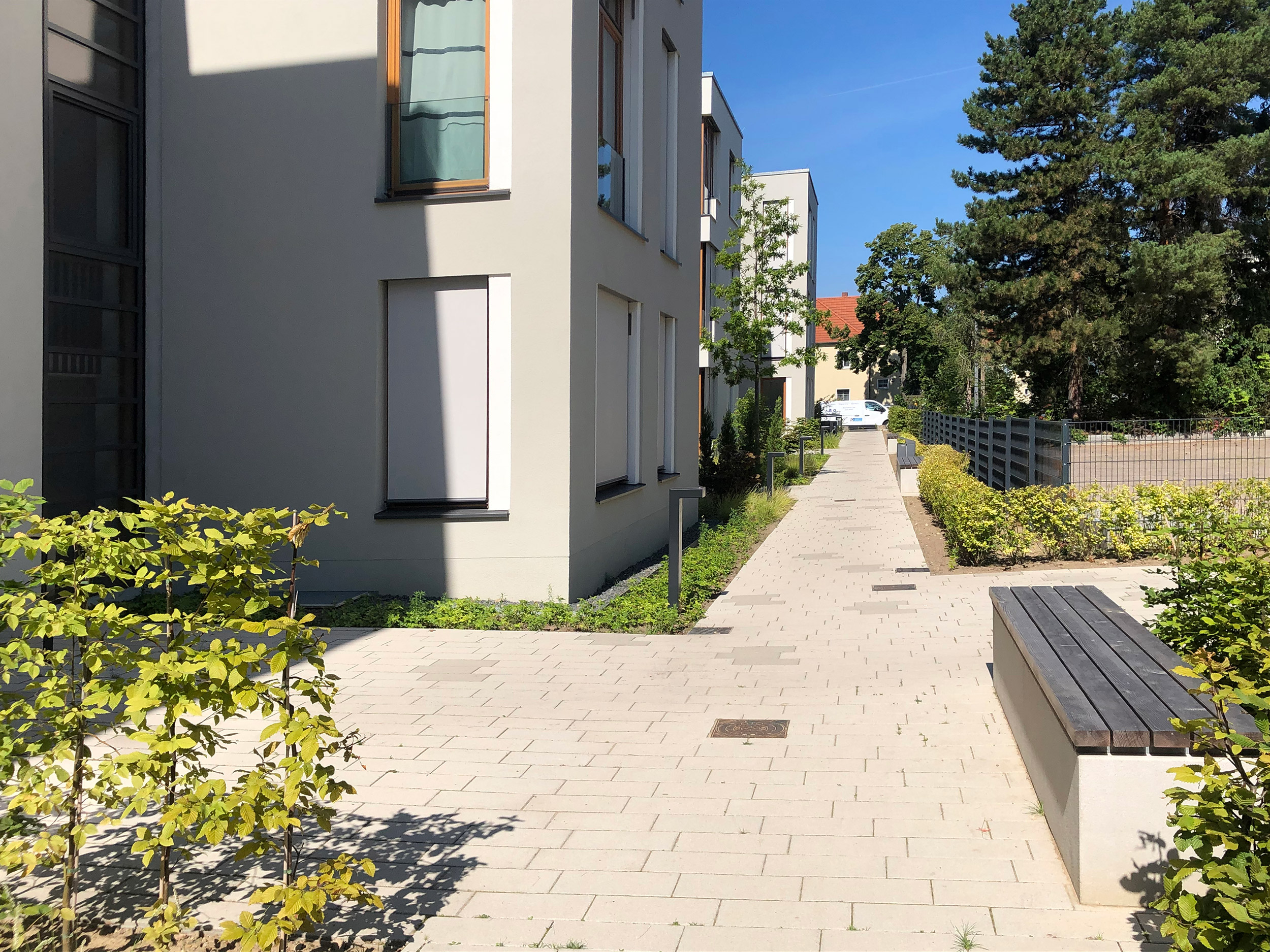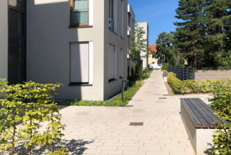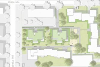 Insgesamt entsteht eine zusammenhängende, homogen gestaltete Gartenanlage, die die Freiflächen der drei Grundstücke miteinander verbindet.