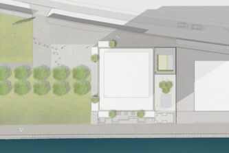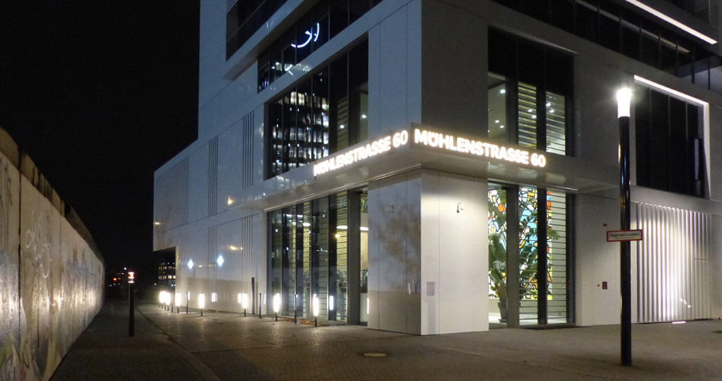 Die Außenraumgestaltung bindet den parallel zur heutigen East-Side-Gallery verlaufenden denkmalgeschützten Kontrollweg ein.