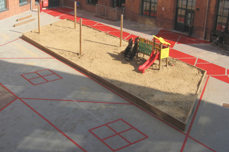 Anfang 2011 wurde KUULA Landschaftsarchitekten für die Erarbeitung eines Gestaltungsvorschlages beauftragt. Die Wiederverwendung der vorh. Spielgeräte und festgesetzte Materialien der Oberflächenbefestigung stellten hierbei die Ausgangslage.