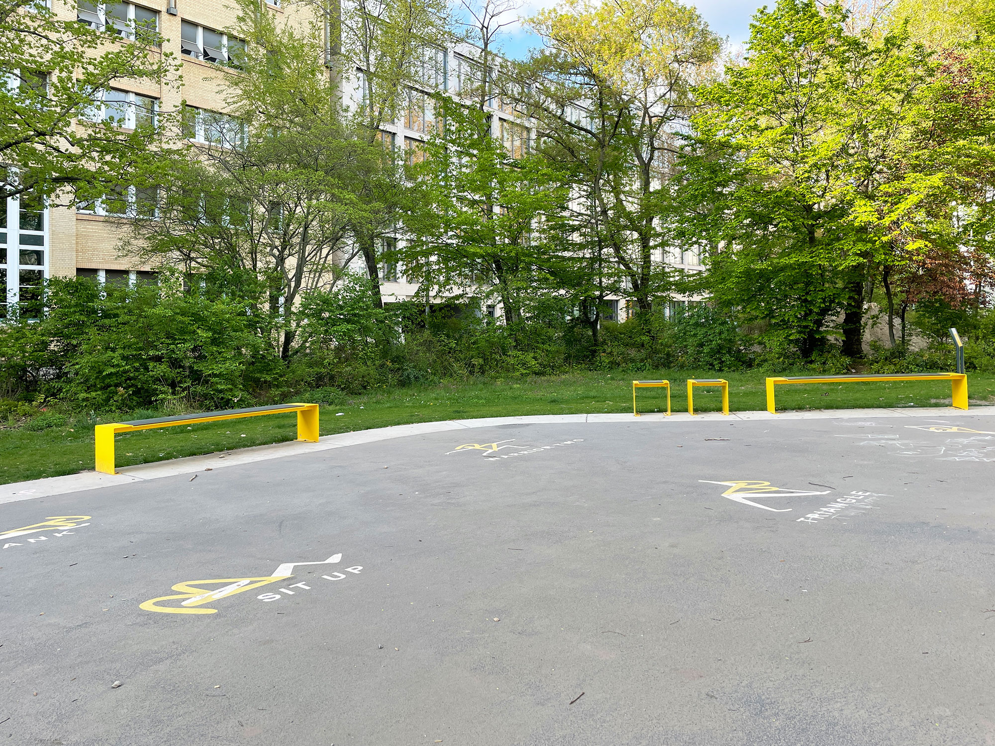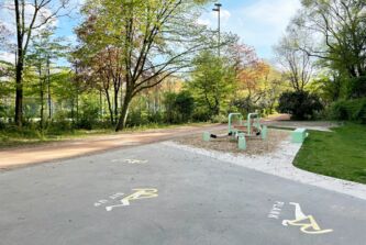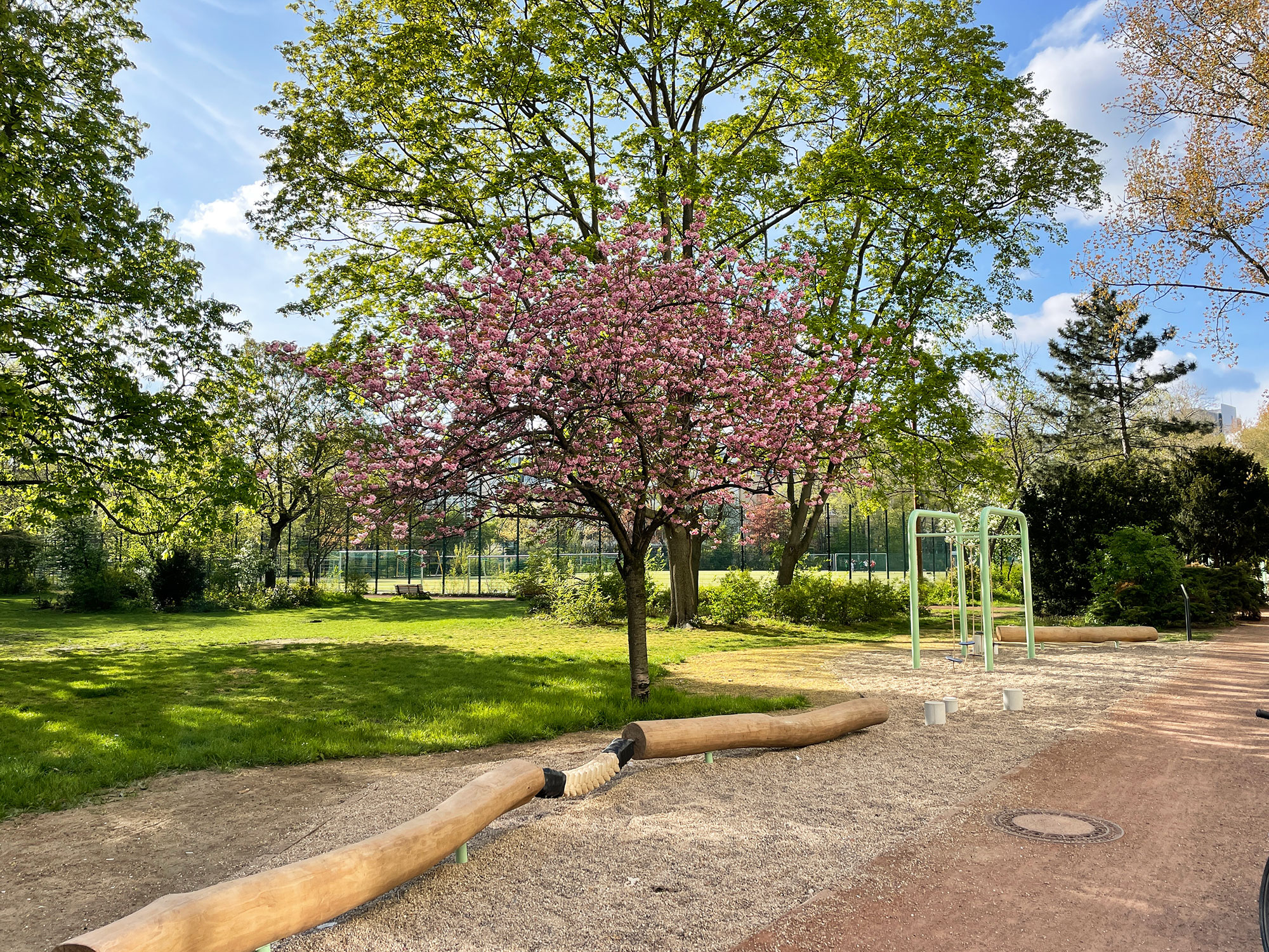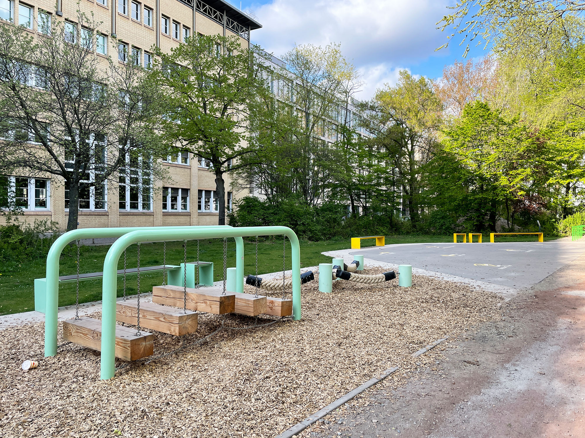 Für den Waldeckpark bestand der Wunsch, die bereits vorhandenen Spielzonen im Park um Balancier-Elemente zu ergänzen. Hierfür haben wir Balanciertaue, den Seilzirkus und einfache Robinienstämme an ausgewählte Standorte verteilt, die an den umlaufenden Weg angelegt sind. Ein inklusiver Steg mit abwechselnden Oberflächen und Neigungen bietet Übungsmöglichkeiten für Menschen mit Behinderung an.
