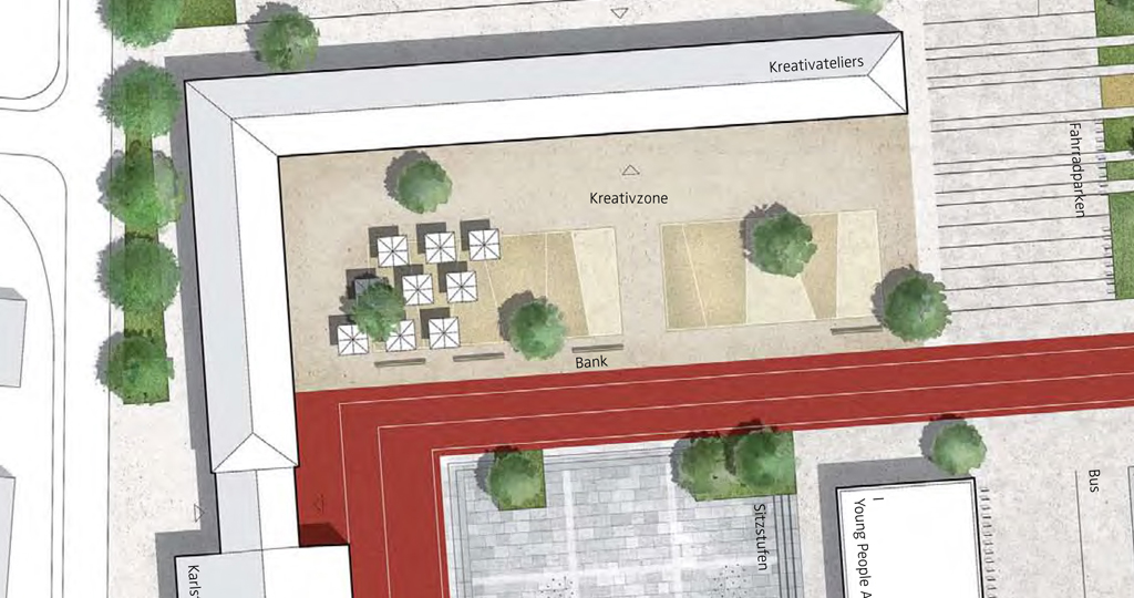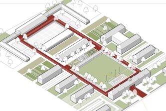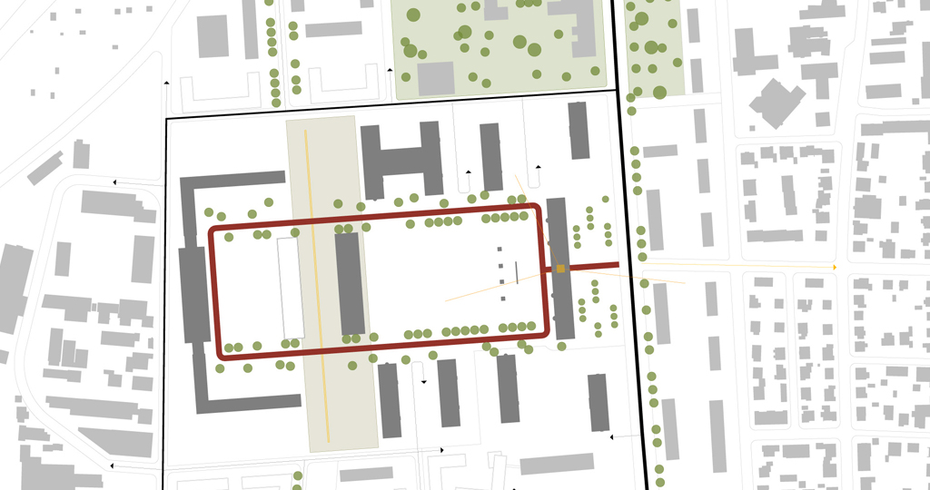 Der Campus erhält eine klare Struktur. Im Kern wird um den verbindenden LOOP ein verkehrsfreier Raum entwickelt, der vielfältige Freizeitnutzungen ermöglicht. Die umgebenden Höfe erhalten entsprechend der dort platzierten kulturellen Nutzungen klare Strukturen. Nach Norden und Süden wird der Campus durch neue bauliche Kanten gefasst.