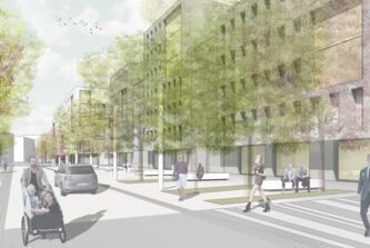 Durch das Einsetzen von Bäumen und Sträuchern entsteht ein urbaner Gartencharakter in den Höfen. Differenzierung zwischen öffentlichen Innenhöfen im Norden sowie den privaten Innenhöfe im Süden des Gebietes.