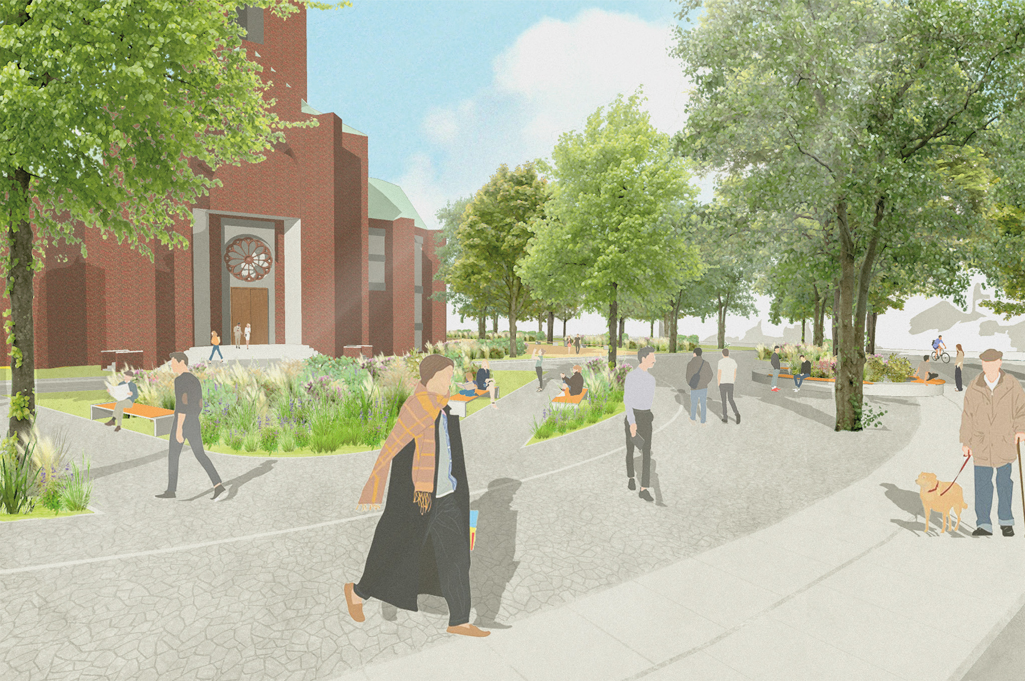Ob zu Fuß oder mit Rad, ob tags oder nachts kommt man jetzt durch eine klare Wegeführung schnell von A nach B über unseren Lausi. Die neue, offene Gestaltung macht den Platz für alle Nutzer:innen nicht nur überschaubarer, sondern auch sicherer. Keine Gebüsche mehr, sondern viel Grün, das durch die Anwohner:innen mitgestaltet wird. Und egal mit welchen Rollen, Niveauunterschiede gibt es hier nicht mehr, denn der Lausi ist für alle da!