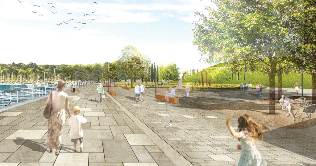 Ziel des Entwurfes ist eine zeitgemäße Gestaltung der Freiflächen mit differenzierten Angeboten für verschiedene Nutzergruppen, sowie die Aufwertung der großzügigen Grünflächen mit Aufenthaltsangeboten und neuen Spielflächen.
