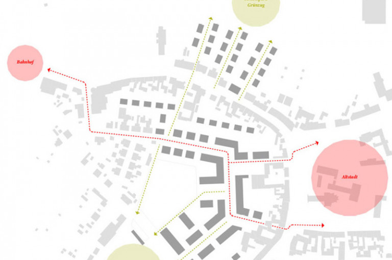 Mit dem Entwurf werden die städtebaulichen und freiräumlichen Besonderheiten der Stadt bzw. der beiden Teilbereiche aufgenommen und weiter entwickelt.